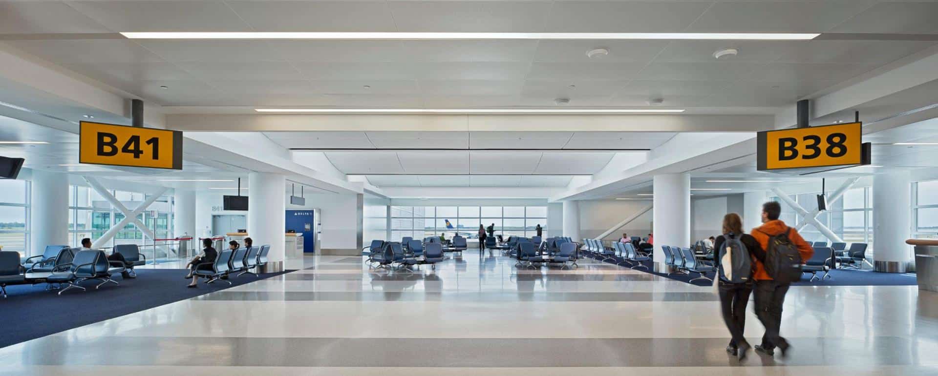 A new 374,500 sq. ft., four-story, nine-gate addition to the existing International Air Terminal 4 at JFK International Airport. The Concourse B extension for Delta includes additional gates and the Delta Sky Club.
