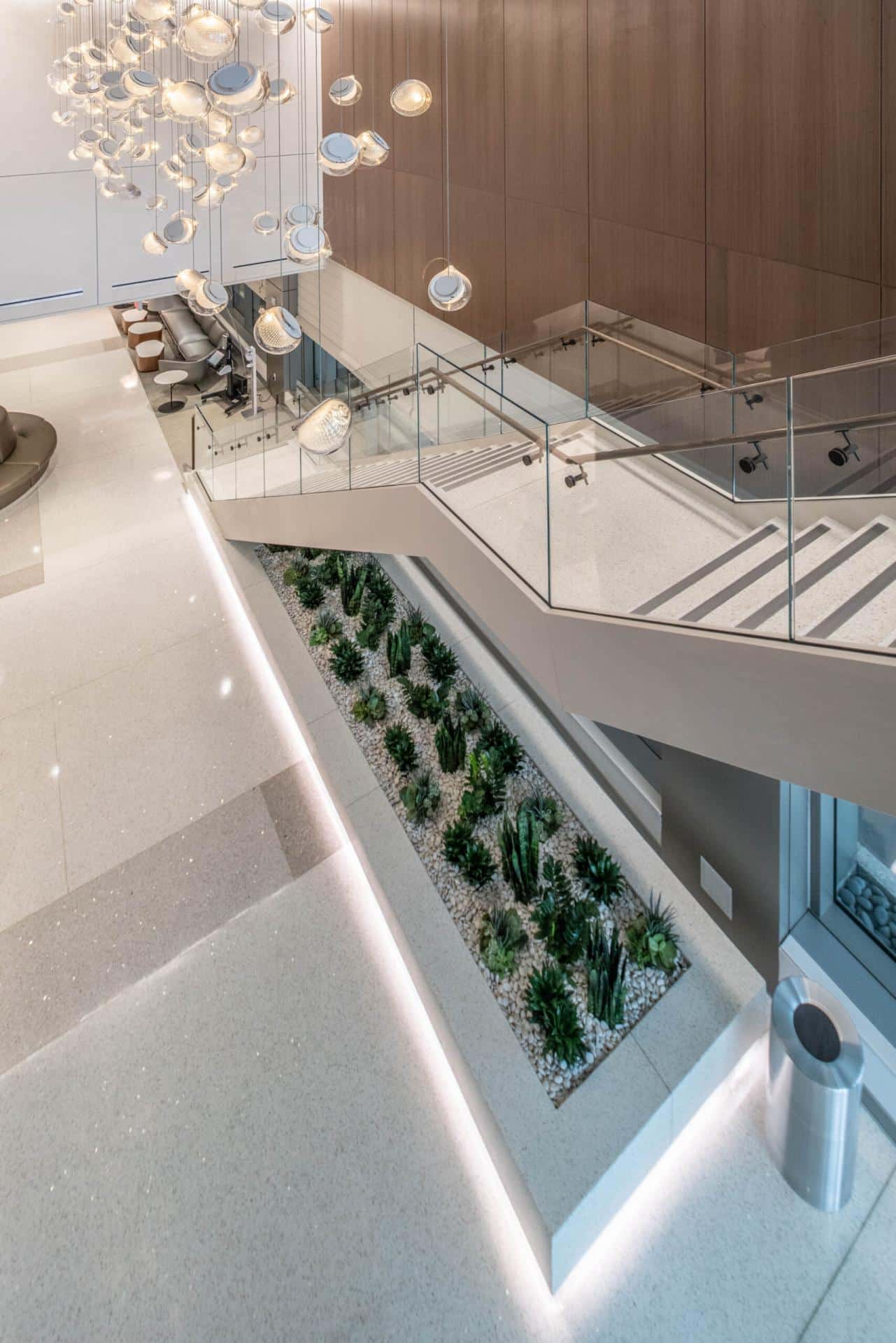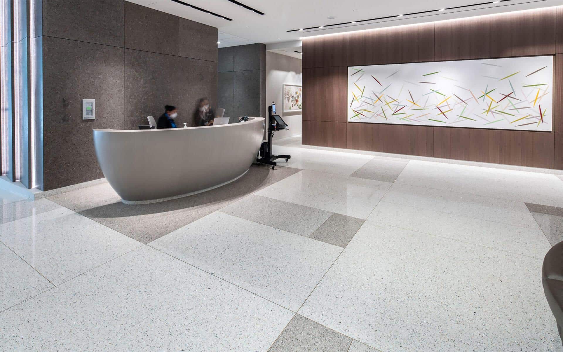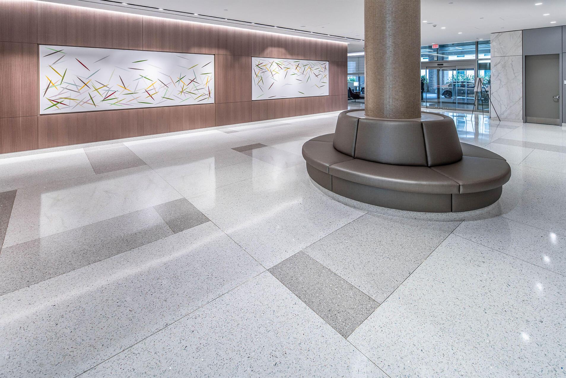 The New Center for Advanced Medicine & Surgery is the most significant addition to White Plains Hospital’s ongoing campus transformation. The terrazzo floor span all 10 levels throughout the facility and a focal point of a grand stair with floating epoxy terrazzo treads and a poured in place vertical terrazzo planter below.